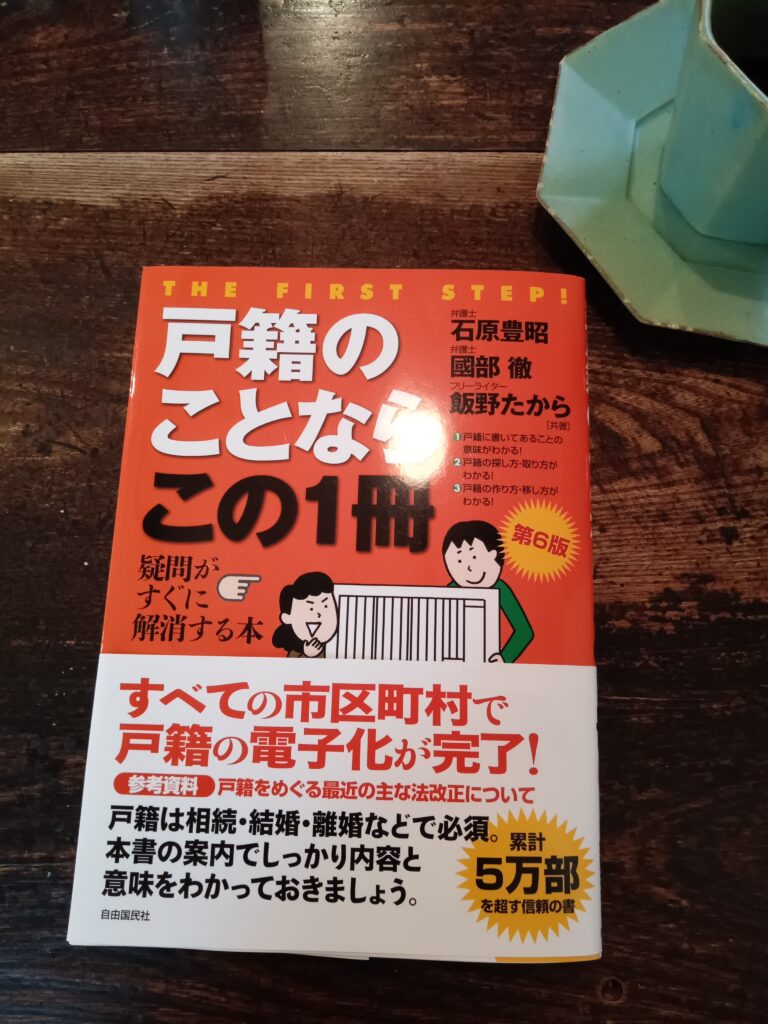一昨日、杉並区にある「くろもじ珈琲」で、「戸籍のことならこの1冊」という本を読みました。